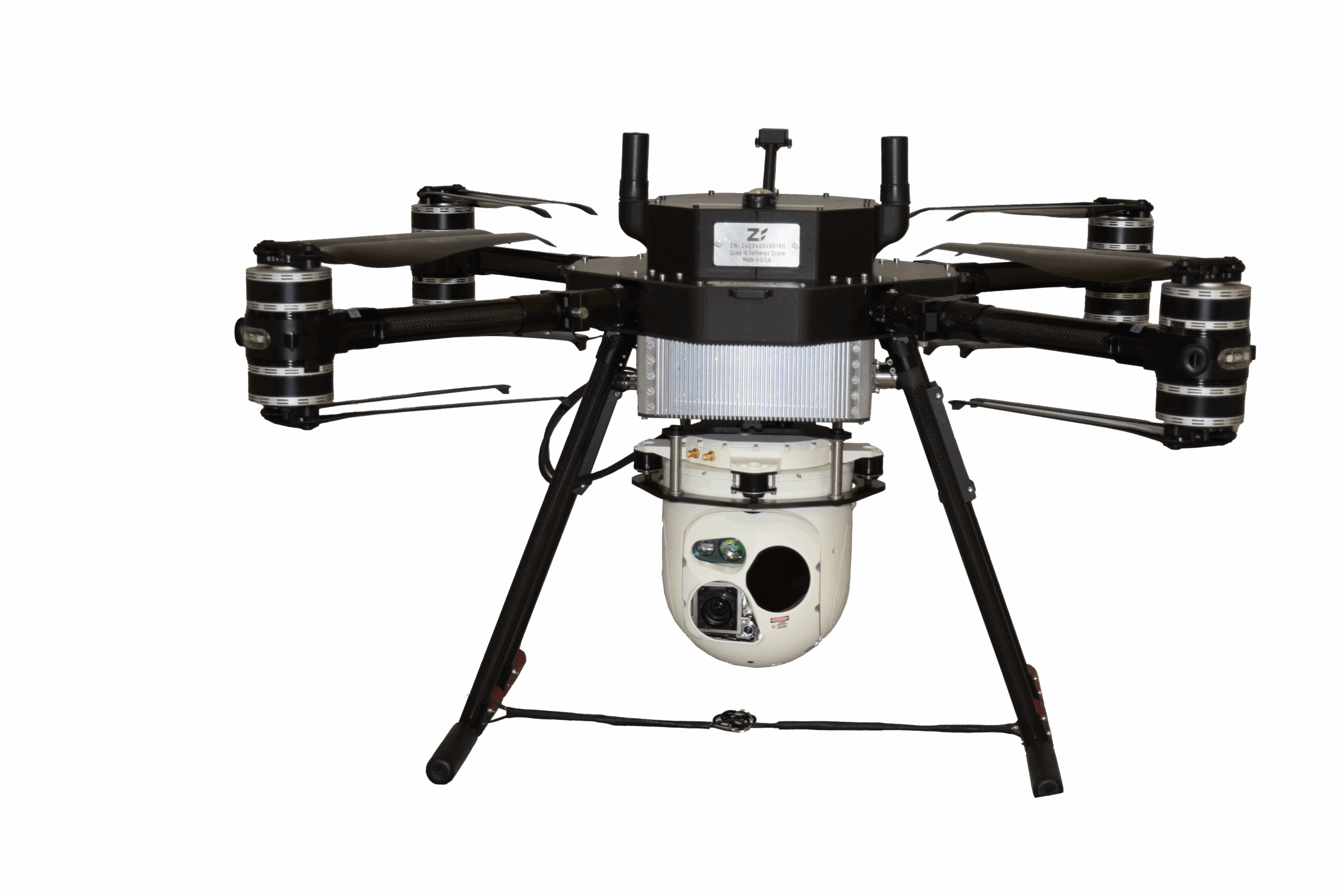 Quad-L supports tethered operation and various payloads such as communication devices, EO/IR cameras or other custom devices up to 8 lbs with 1800 watts ground power need.