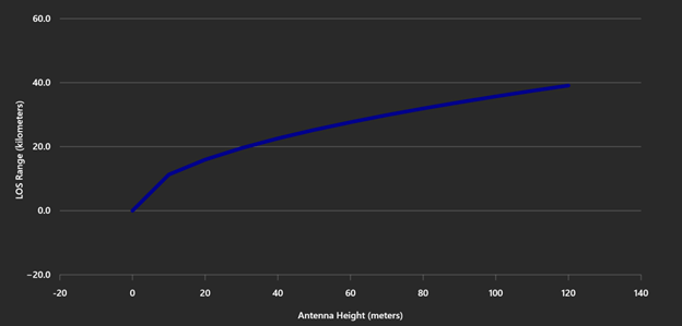 Where H₁ and H₂ are the heights of the two antennas in feet, which accounts for the Earth’s curvature. Higher altitudes significantly increase range because they extend the line of sight, with doubling antenna height increasing range by a factor of √2 (approximately 1.41).